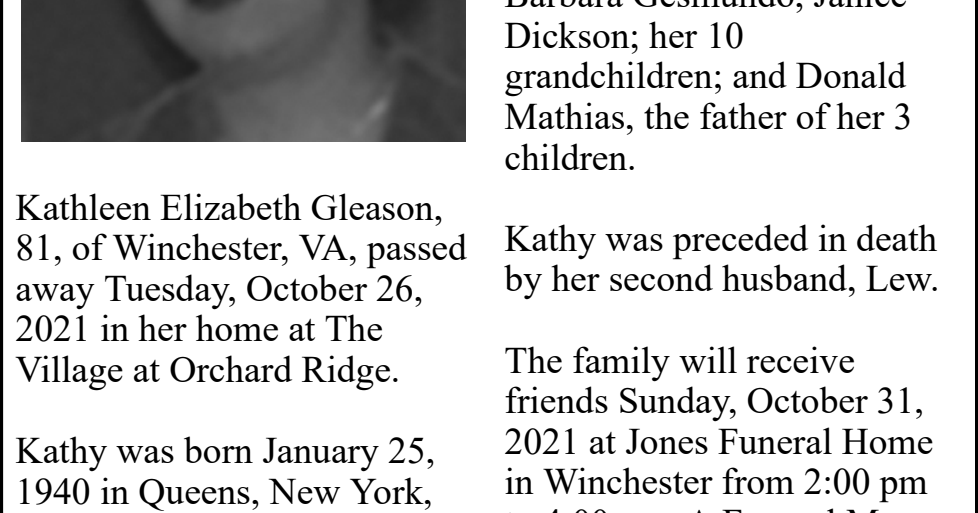 Kathleen Elizabeth Gleason Obituaries Winchesterstar Com